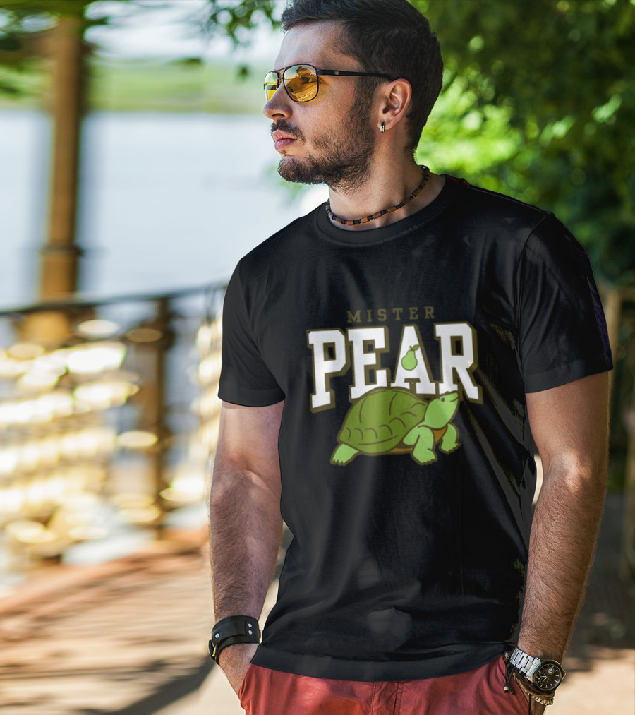 Meet the Mister Pear Turtle Varsity T-Shirt. Made with 100% ring-spun cotton that's pre-shrunk to minimize shrinking after washing. Features reinforced construction for added structure. Available in standard U.S. sizes S-5XL (see size chart for specifics).