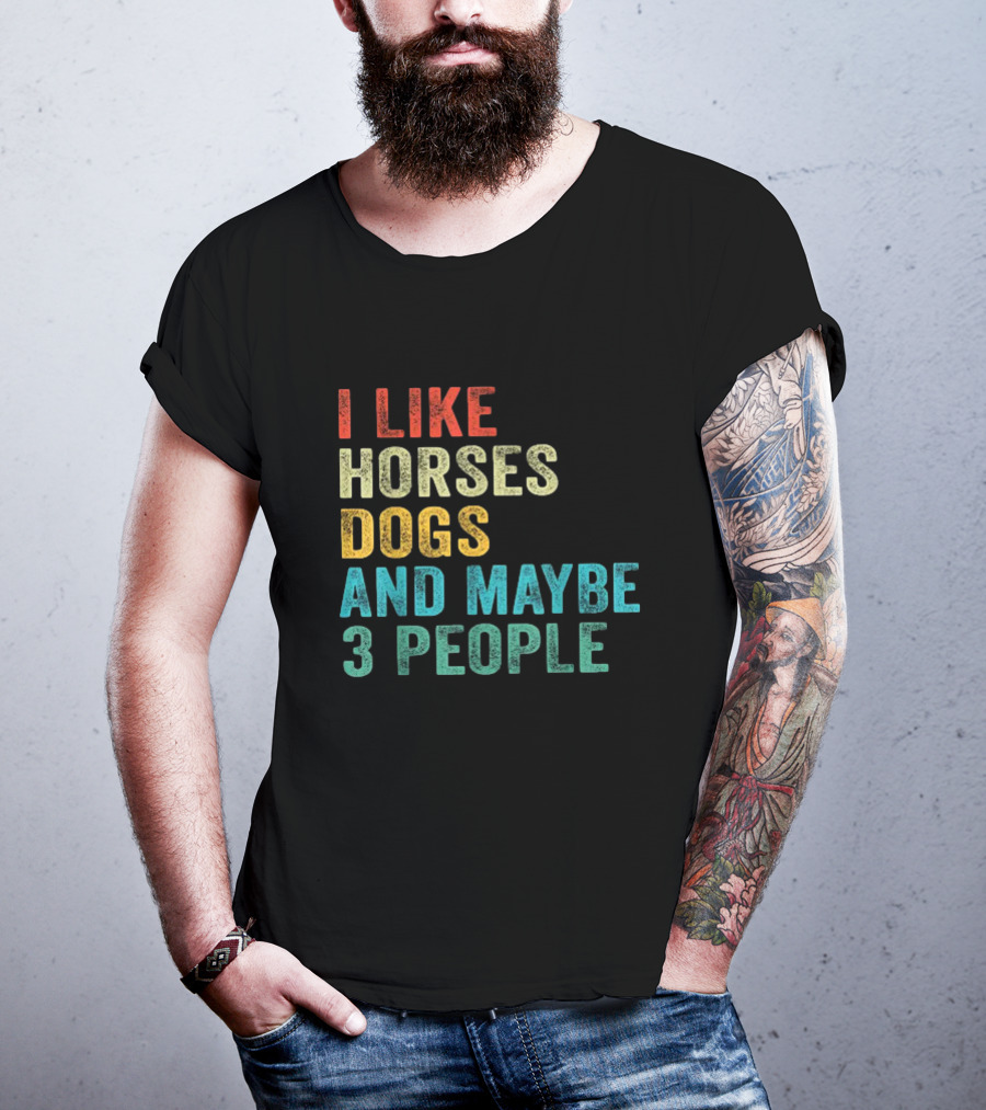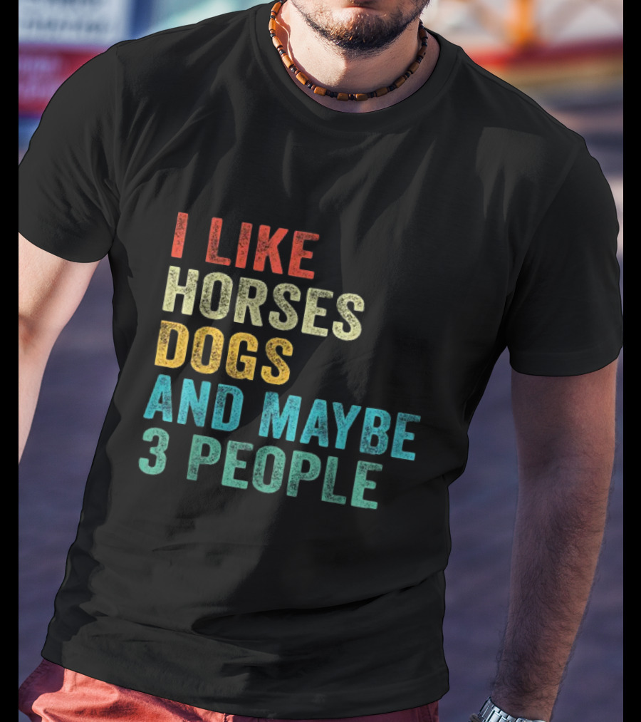 Meet the I Like Horses Dogs and Maybe 3 People Horse Rider T-Shirt. Made with 100% ring-spun cotton that's pre-shrunk to minimize shrinking after washing. Features reinforced construction for added structure. Available in standard U.S. sizes S-5XL (see size chart for specifics).