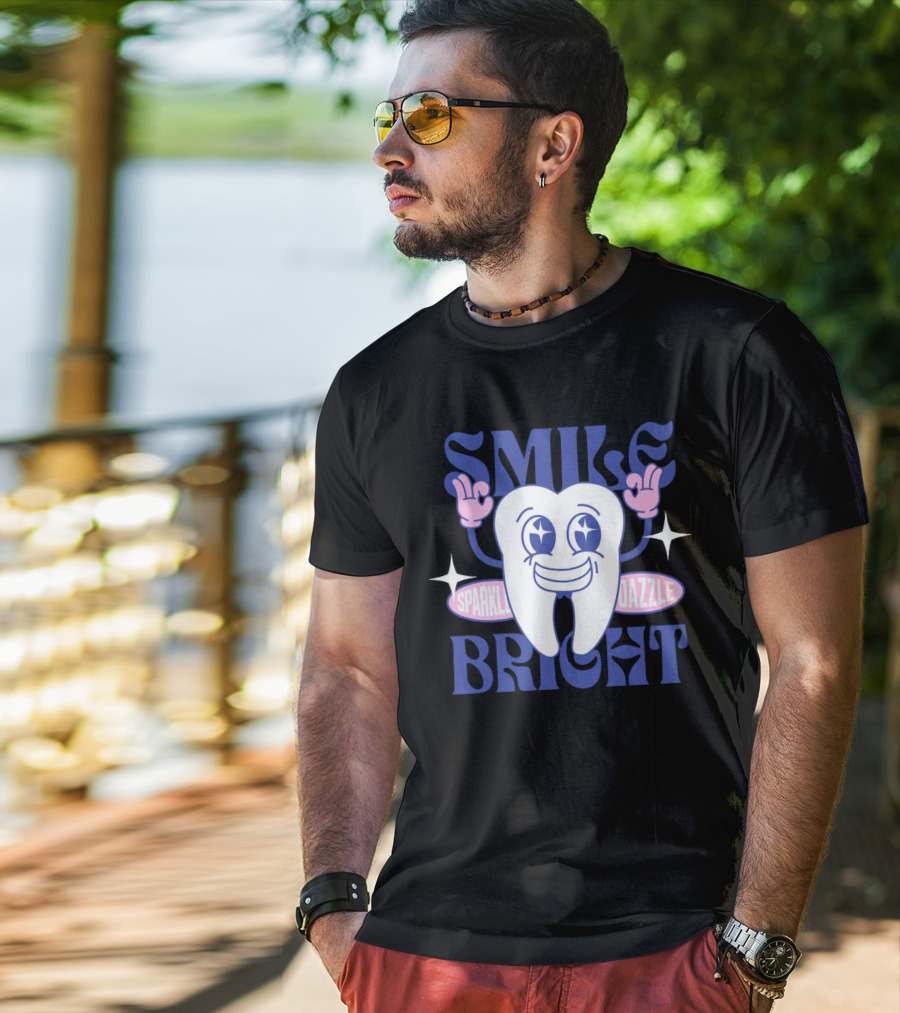 Meet the SMILE BRIGHT SPARKLE DAZZLE T-Shirt. Made with 100% ring-spun cotton that's pre-shrunk to minimize shrinking after washing. Features reinforced construction for added structure. Available in standard U.S. sizes S-5XL (see size chart for specifics).