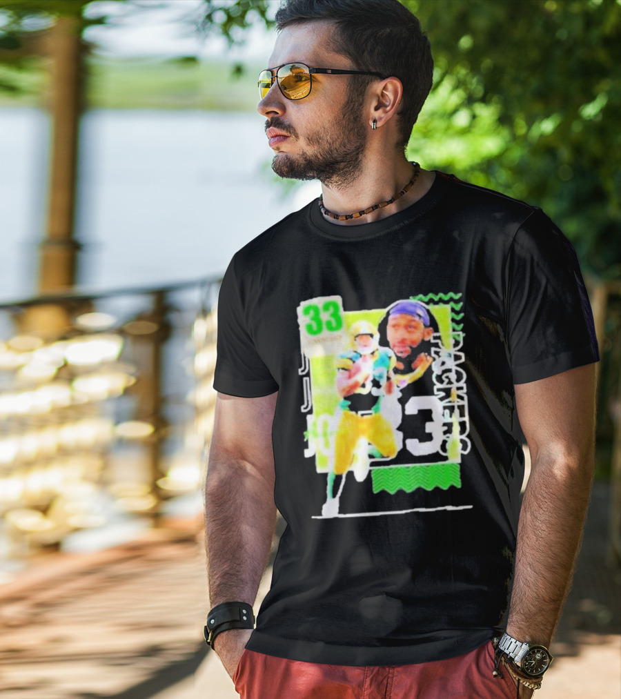 Meet the Packers Aaron Jones 33 Football Player Running Back T-Shirt. Made with 100% ring-spun cotton that's pre-shrunk to minimize shrinking after washing. Features reinforced construction for added structure. Available in standard U.S. sizes S-5XL (see size chart for specifics).