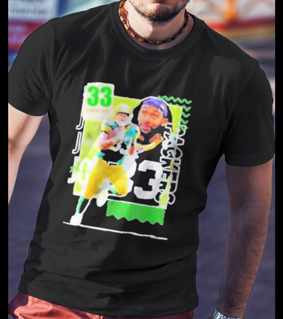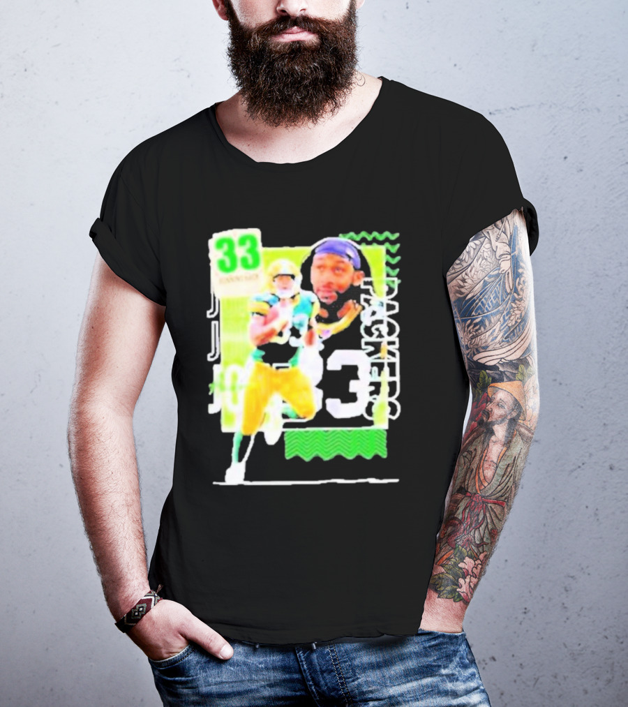 Packers Aaron Jones 33 Football Player Running Back T-shirt — close-up view, front print.