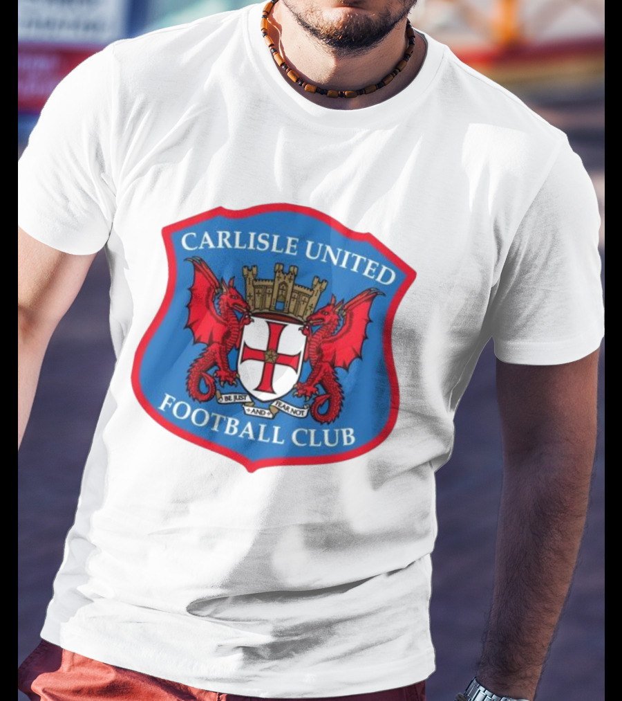 Carlisle United Football Club Crest Bejust And Fear Not Dual Red Dragons Shield T-Shirt