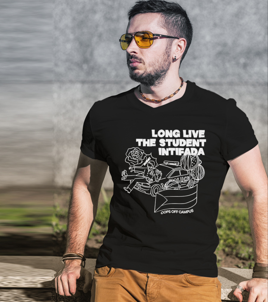 Long Live The Student Intifada Cops Off Campus Police Car Roses And Football Helmet T-Shirt