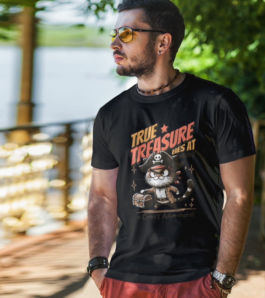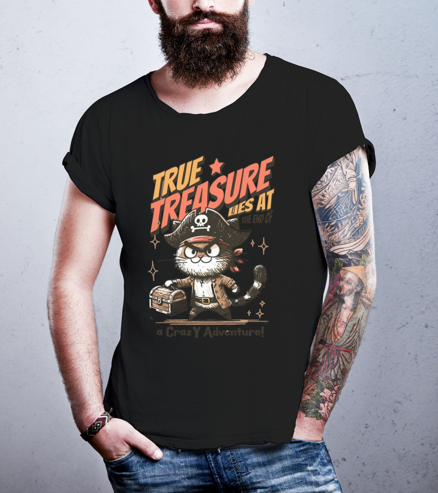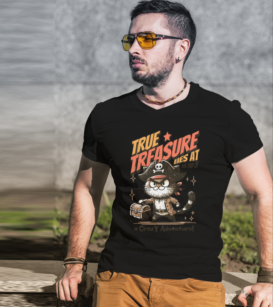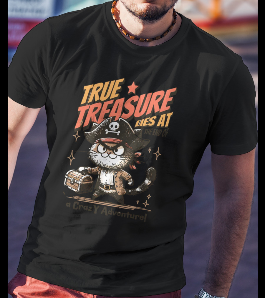 Meet the TRUE TREASURE LIES AT THE END OF a CraZY Adventure T-Shirt. Made with 100% ring-spun cotton that's pre-shrunk to minimize shrinking after washing. Features reinforced construction for added structure. Available in standard U.S. sizes S-5XL (see size chart for specifics).