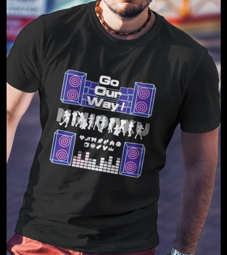 Meet the Love Live Nijigasaki Academy School Idol Club Go Our Way Speaker Silhouettes and Symbols T-Shirt. Made with 100% ring-spun cotton that's pre-shrunk to minimize shrinking after washing. Features reinforced construction for added structure. Available in standard U.S. sizes S-5XL (see size chart for specifics).