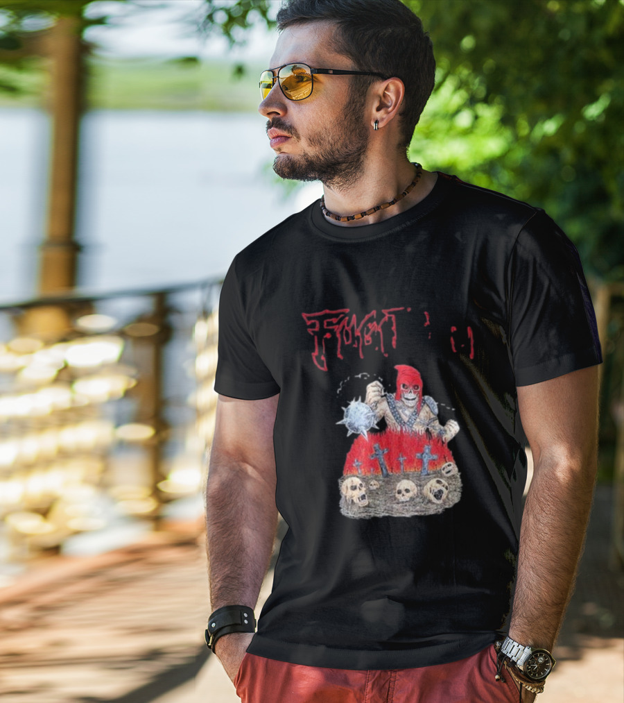 Meet the Fugitivetx Mace Guy with Skulls and Crosses T-Shirt. Made with 100% ring-spun cotton that's pre-shrunk to minimize shrinking after washing. Features reinforced construction for added structure. Available in standard U.S. sizes S-5XL (see size chart for specifics).