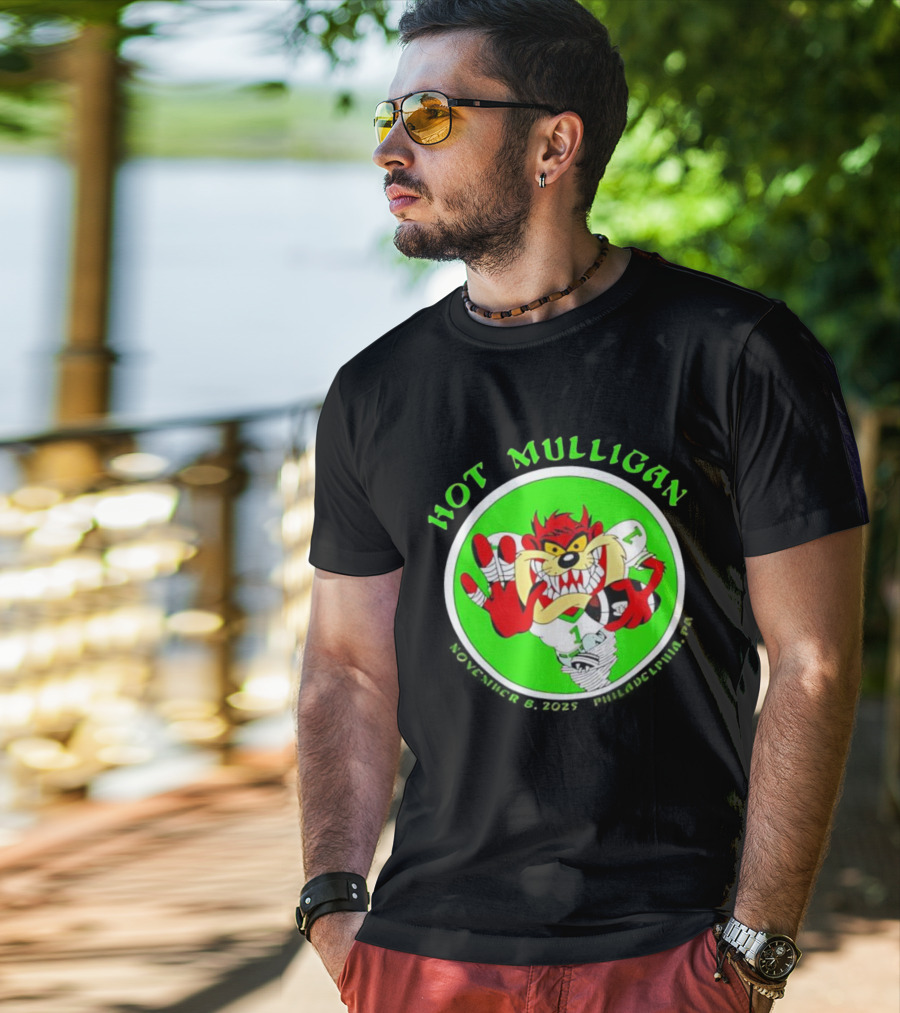 Hot Mulligan The Fillmore Philadelphia Nov 8th 2025 Looney Tunes Character T-shirt — close-up view, front print.