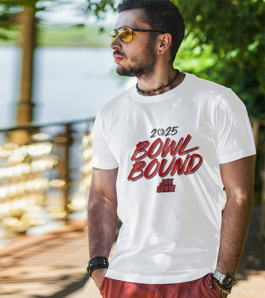 2025 Bowl Bound Jax State Football T-shirt — close-up view, front print.
