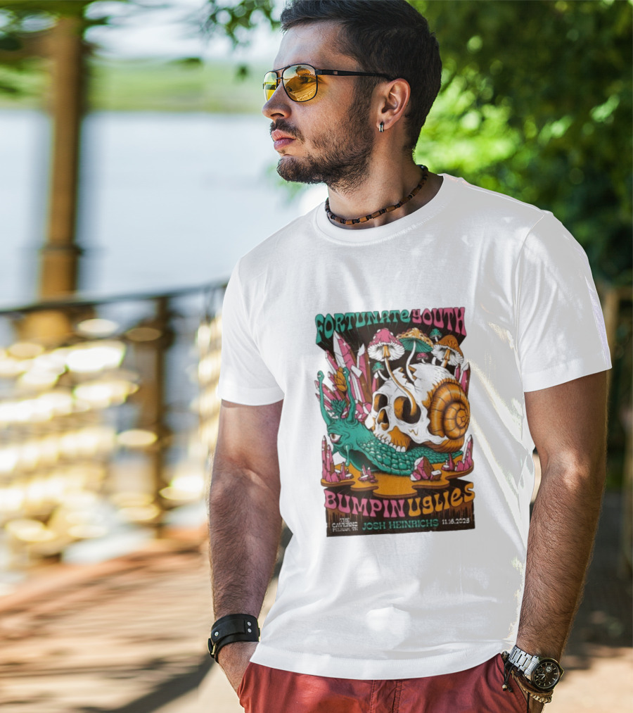 Meet the Fortunate Youth Bumpin Uglies Skull Snail The Caverns TN Nov 16 2023 Josh Heinrichs T-Shirt. Made with 100% ring-spun cotton that's pre-shrunk to minimize shrinking after washing. Features reinforced construction for added structure. Available in standard U.S. sizes S-5XL (see size chart for specifics).