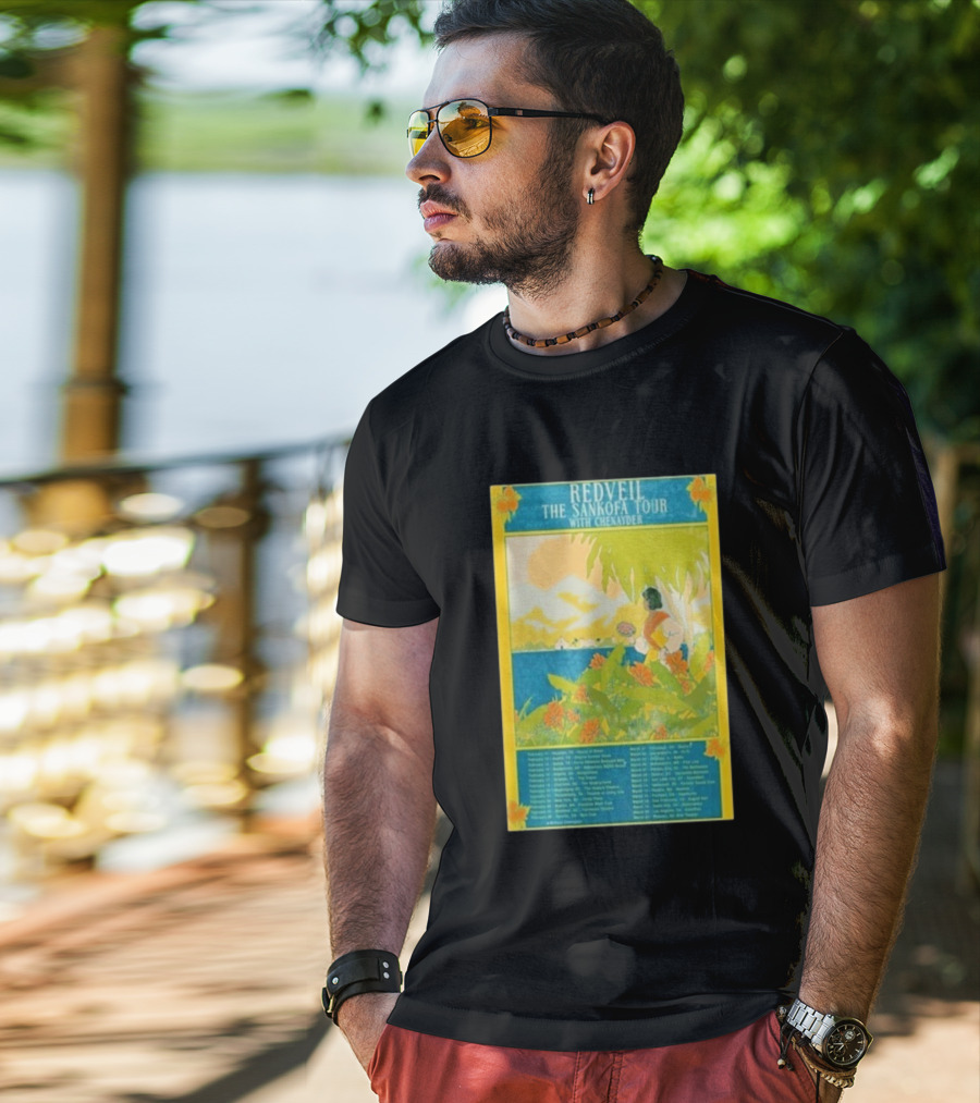 Meet the Redveil The Sankofa Tour With Chenayder 2026 Dates and Locations Art Nouveau Style Coastline Scene T-Shirt. Made with 100% ring-spun cotton that's pre-shrunk to minimize shrinking after washing. Features reinforced construction for added structure. Available in standard U.S. sizes S-5XL (see size chart for specifics).