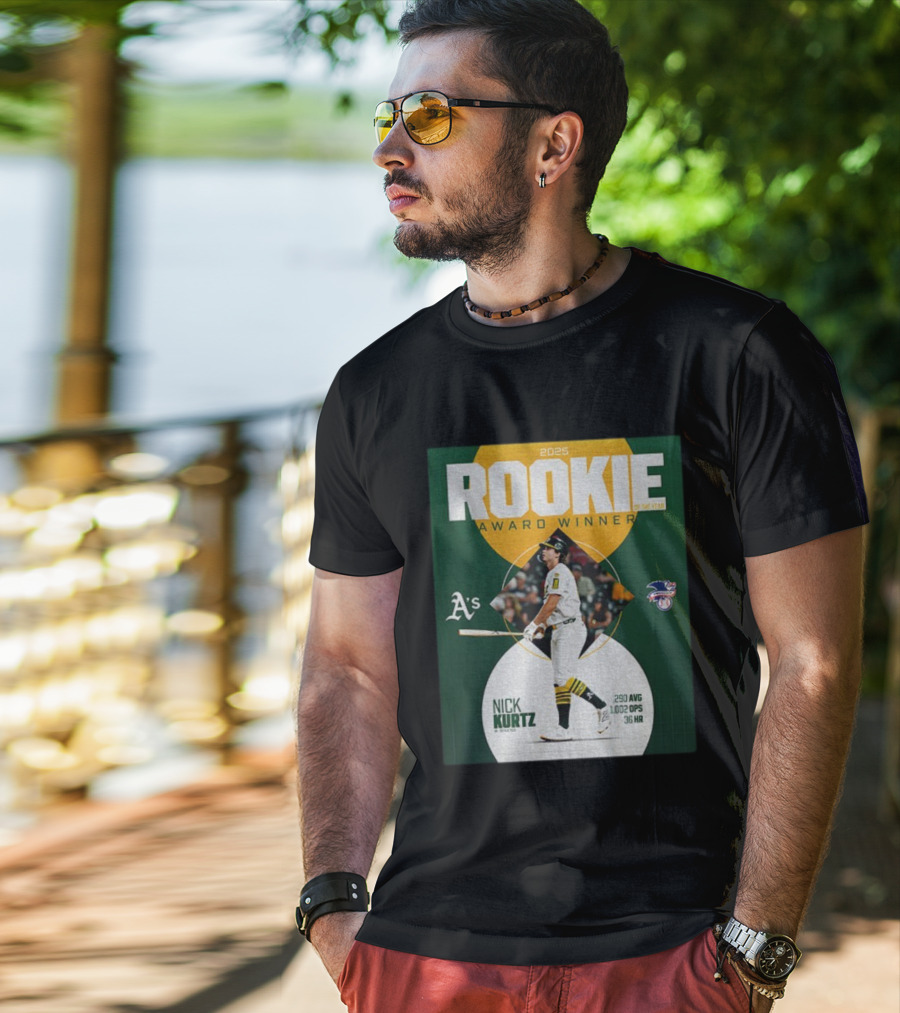 Images Gallery — 2025 Rookie of the Year Award Winner Nick Kurtz Oakland Athletics .290 AVG 1.002 OPS 36 HR Shirt Mockups Collection