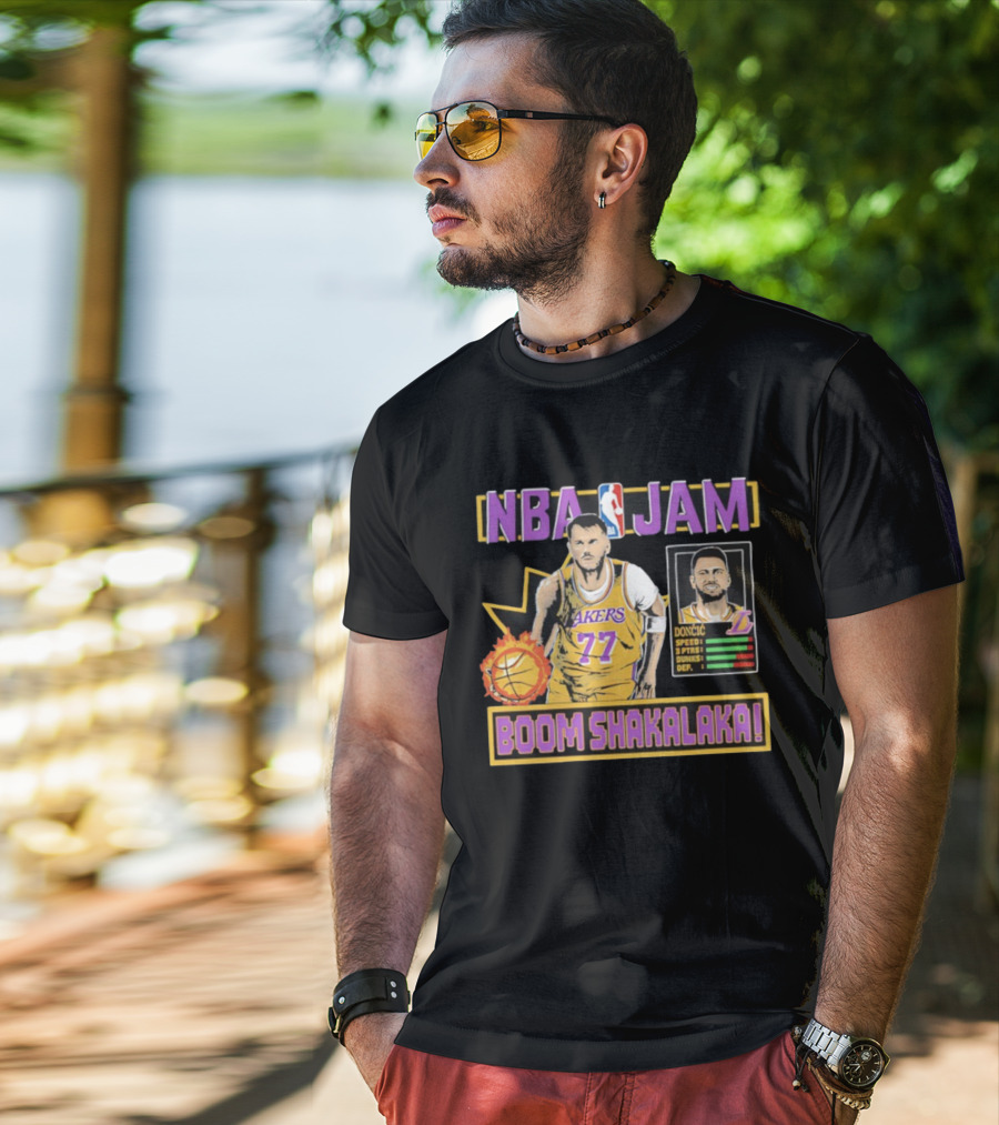 Images Gallery — NBA Jam Lakers 77 Doncic Boom Shakalaka Shirt Mockups Collection