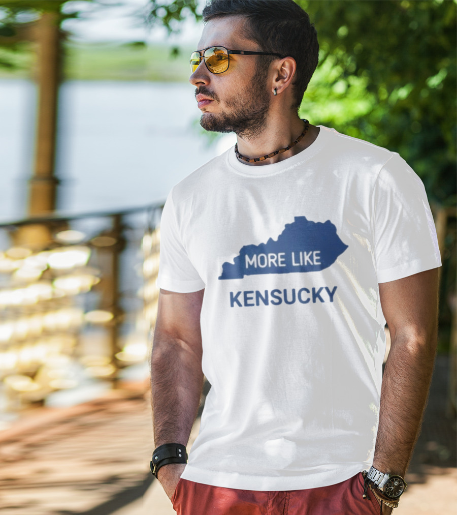 Meet the More Like Kensucky Kentucky Map Outline T-Shirt. Made with 100% ring-spun cotton that's pre-shrunk to minimize shrinking after washing. Features reinforced construction for added structure. Available in standard U.S. sizes S-5XL (see size chart for specifics).