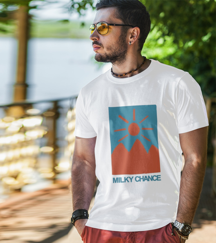 Meet the Milky Chance Sun Mountain Illustration T-Shirt. Made with 100% ring-spun cotton that's pre-shrunk to minimize shrinking after washing. Features reinforced construction for added structure. Available in standard U.S. sizes S-5XL (see size chart for specifics).