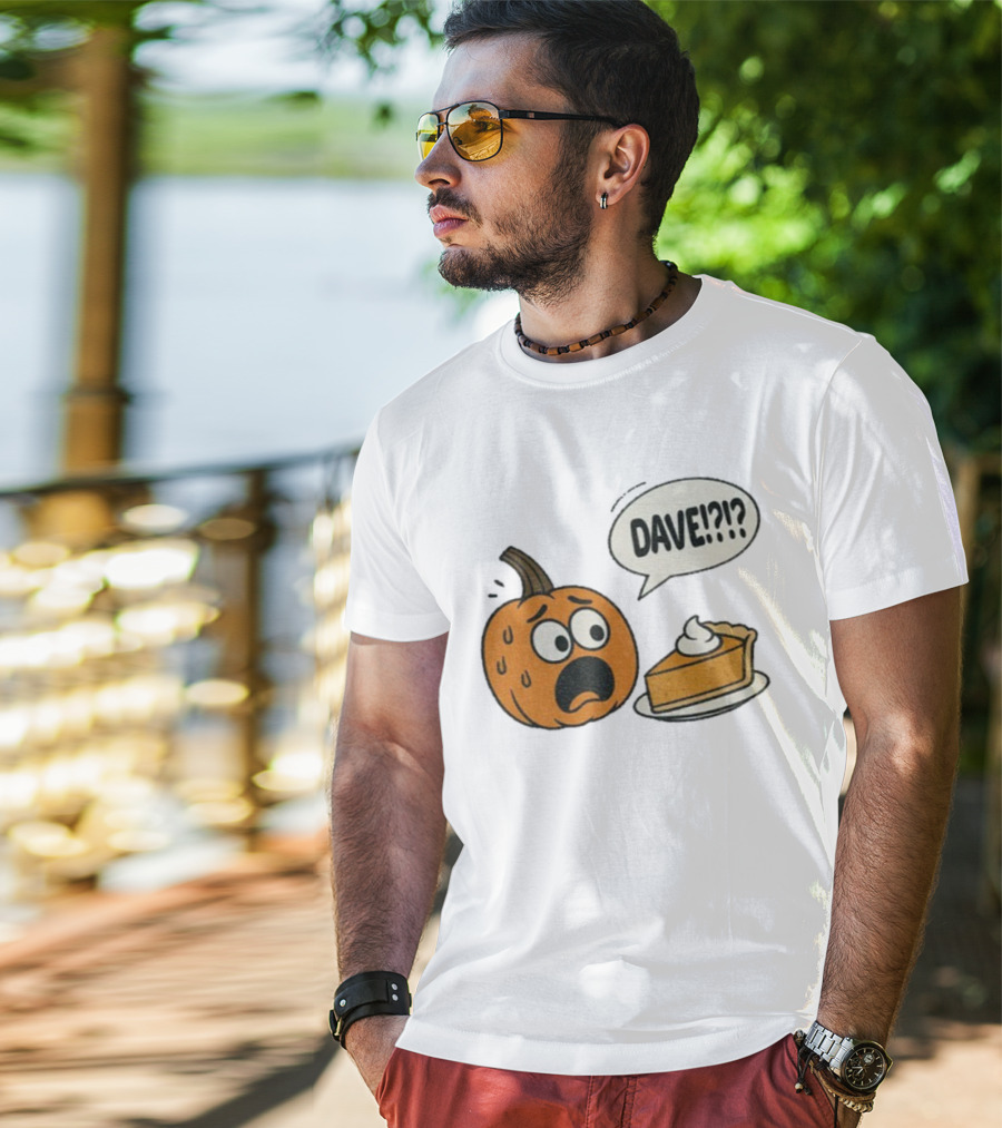 Images Gallery — Dave Funny Pumpkin Pie Thanksgiving Dinner Panic Text Shirt Mockups Collection