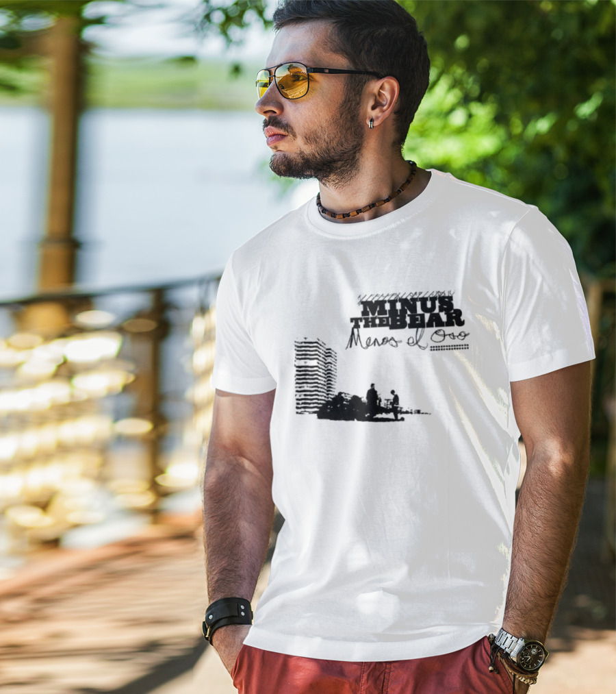 Meet the Minus The Bear Menos El Oso Skyline Urban Scene T-Shirt. Made with 100% ring-spun cotton that's pre-shrunk to minimize shrinking after washing. Features reinforced construction for added structure. Available in standard U.S. sizes S-5XL (see size chart for specifics).
