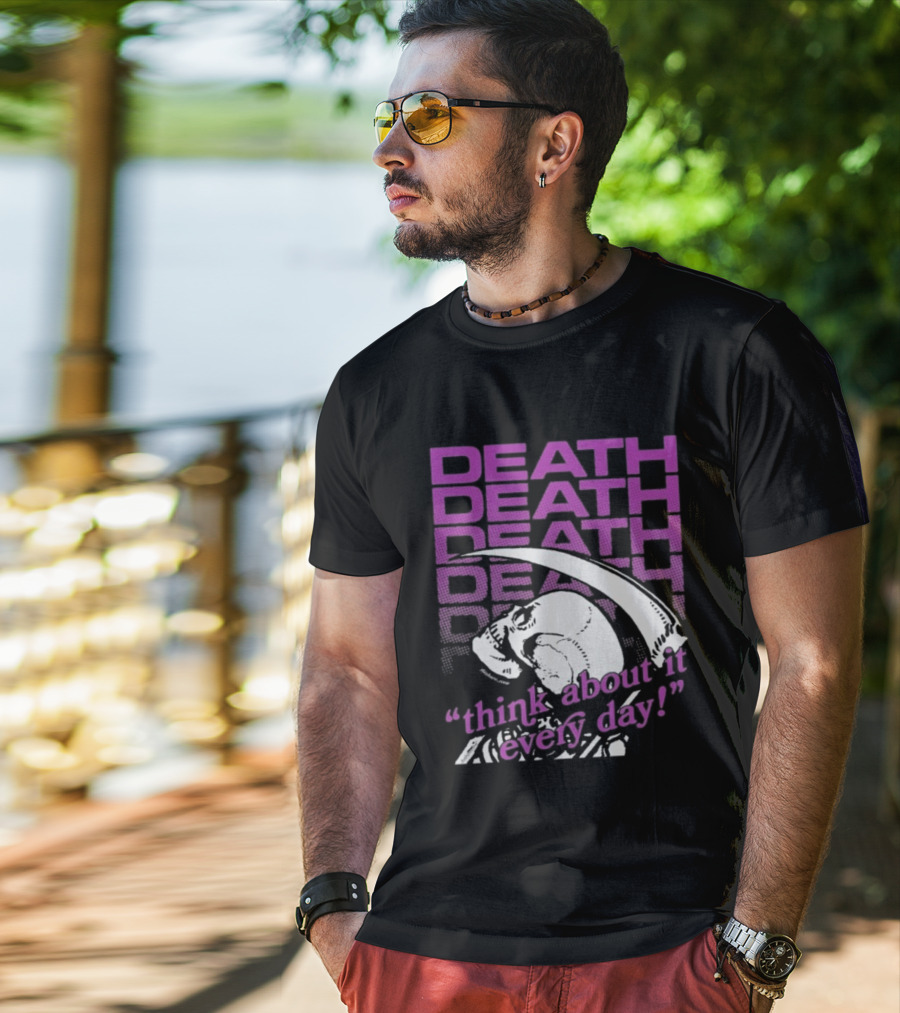 Death Think About It Every Day Skull Pink Reaper T-Shirt