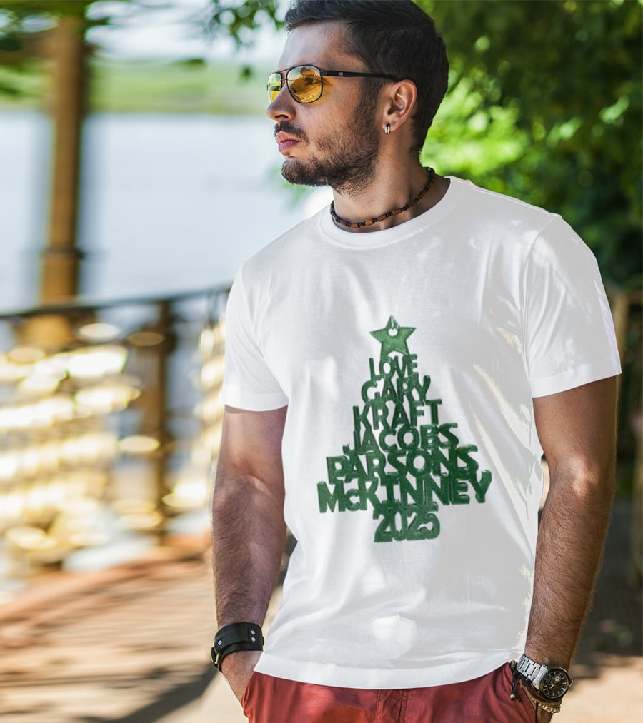 2025 Love Gary Kraft Jacobs Parsons McKinney Christmas Tree T-shirt — close-up view, front print.