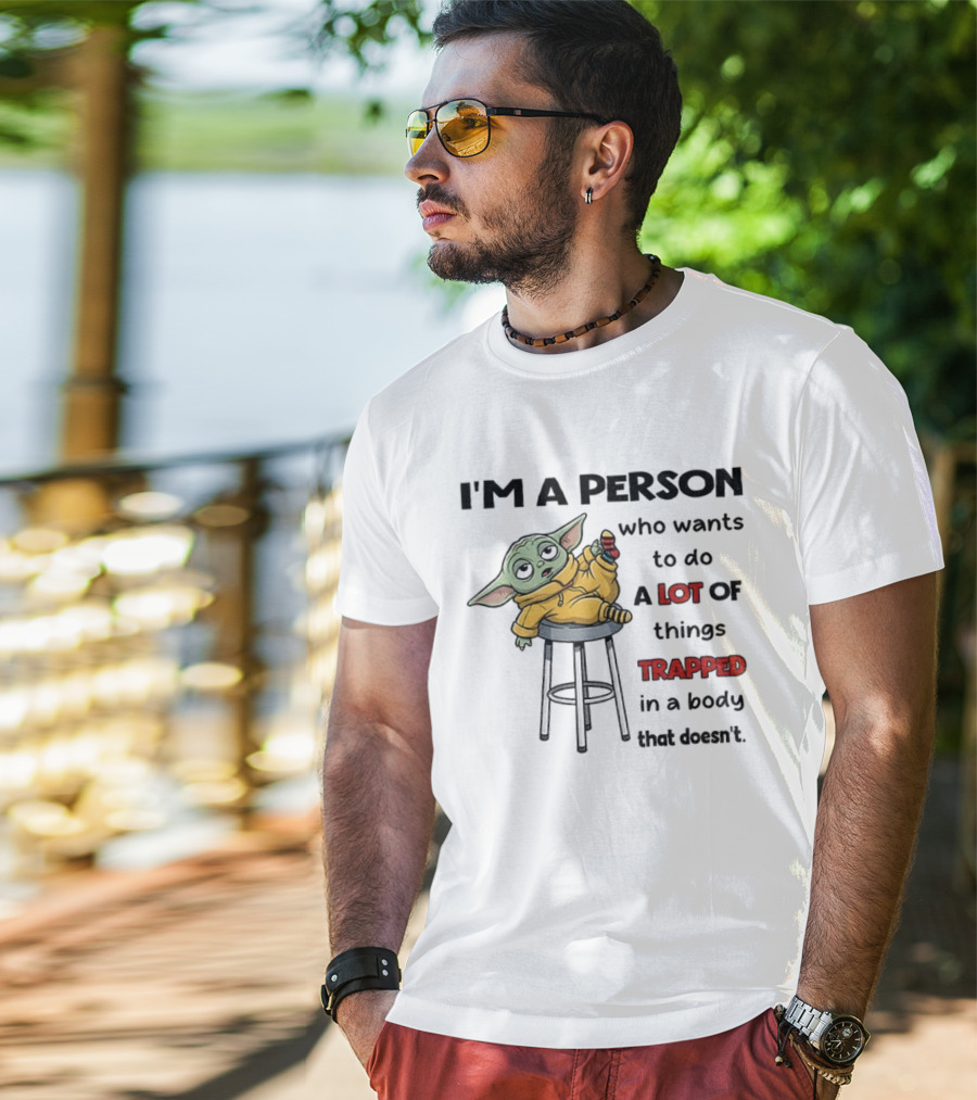Meet the I'm a Person Who Wants to Do a Lot of Things Trapped in a Body That Doesn't Baby Yoda Christmas T-Shirt. Made with 100% ring-spun cotton that's pre-shrunk to minimize shrinking after washing. Features reinforced construction for added structure. Available in standard U.S. sizes S-5XL (see size chart for specifics).