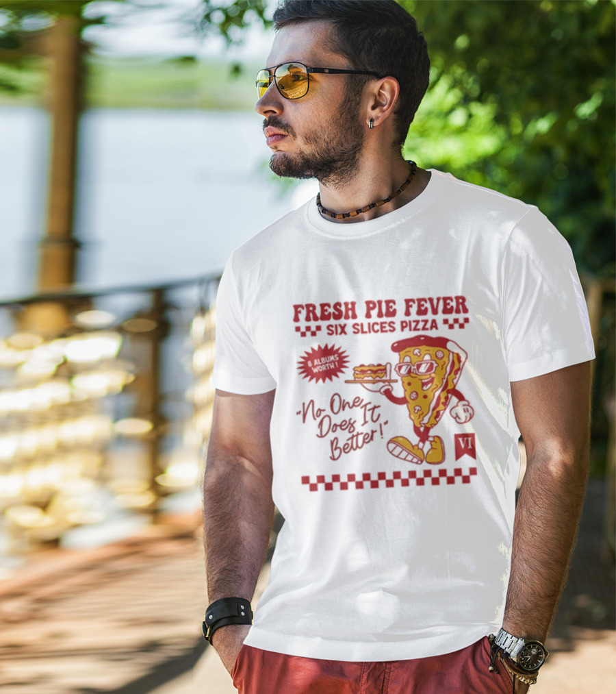 Meet the Fresh Pie Fever Six Slices Pizza No One Does It Better 8 Albums Worth VI T-Shirt. Made with 100% ring-spun cotton that's pre-shrunk to minimize shrinking after washing. Features reinforced construction for added structure. Available in standard U.S. sizes S-5XL (see size chart for specifics).