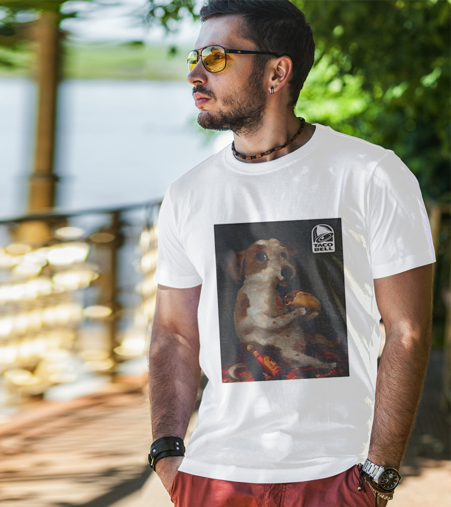 Images Gallery — Dog with Taco Bell Burrito and Hot Sauce Funny Meme Shirt Mockups Collection