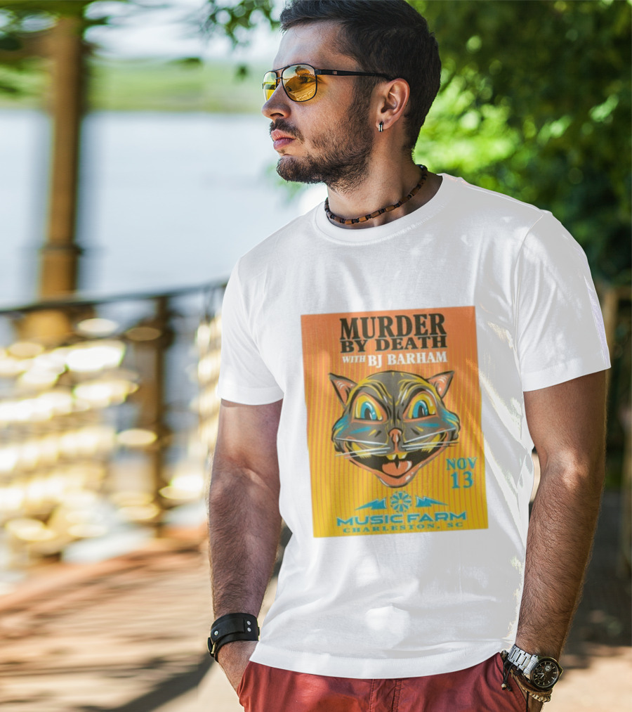 Meet the Murder By Death with BJ Barham Music Farm Charleston SC Nov 13 Cat Art T-Shirt. Made with 100% ring-spun cotton that's pre-shrunk to minimize shrinking after washing. Features reinforced construction for added structure. Available in standard U.S. sizes S-5XL (see size chart for specifics).