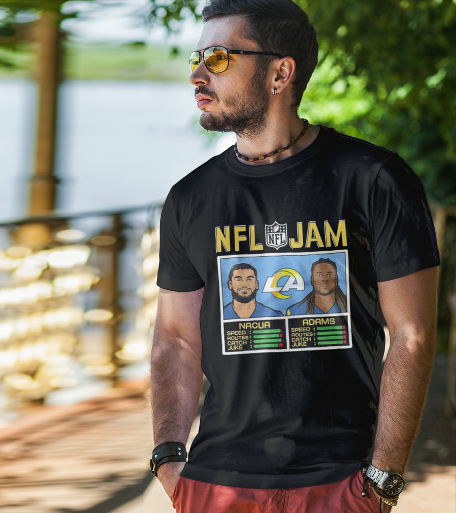 Images Gallery — Puka Nacua Adams NFL Jam Los Angeles Rams Classic Video Game Style Shirt Mockups Collection