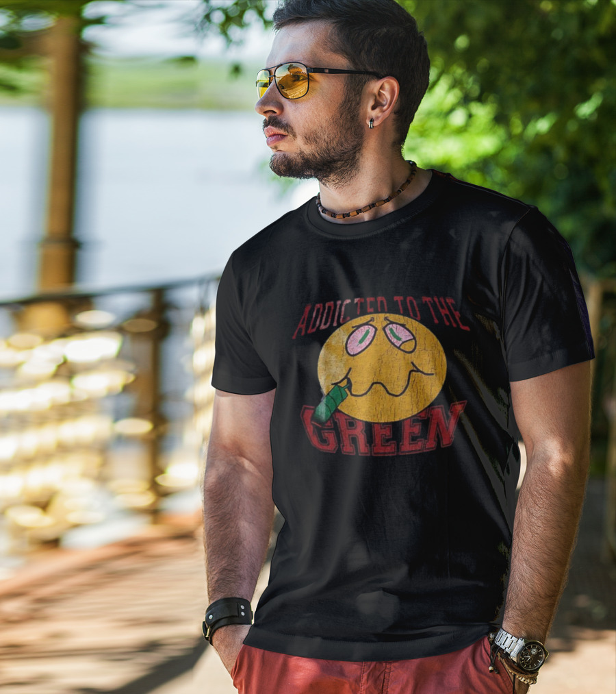 Addicted To The Green Smiley Face Smoking Icon T-Shirt
