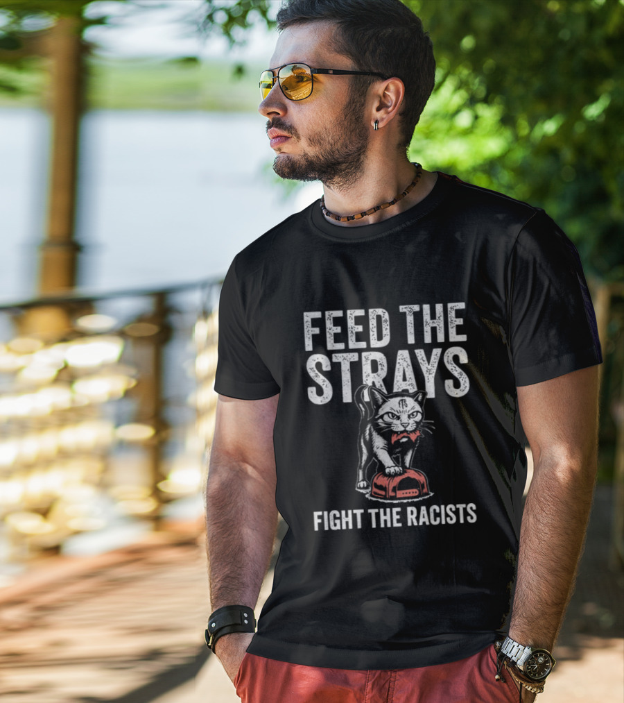 Feed The Strays Fight The Racists Cat With Red Helmet T-Shirt