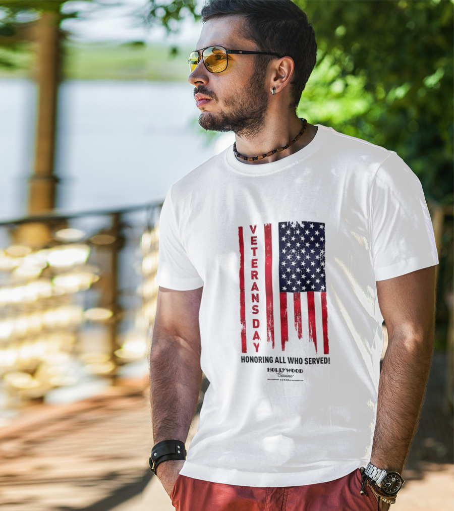 Images Gallery — Veterans Day Honoring All Who Served Hollywood Flag Stars and Stripes Shirt Mockups Collection