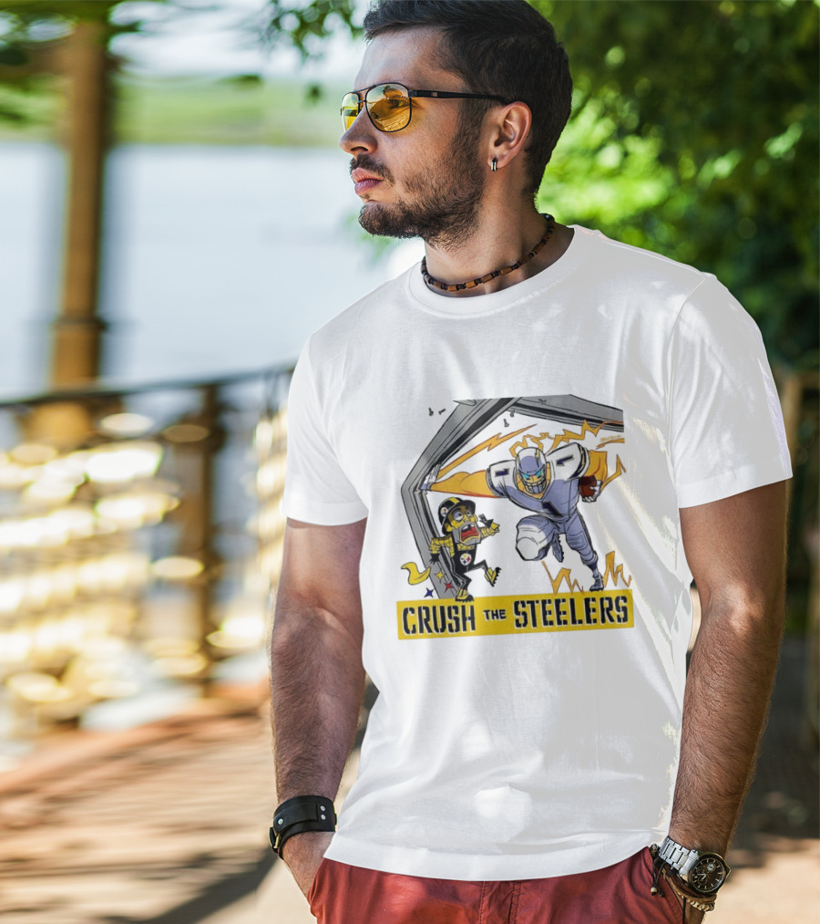 Images Gallery — Los Angeles Chargers vs Pittsburgh Steelers NFL 2025 Crush the Steelers Shirt Mockups Collection