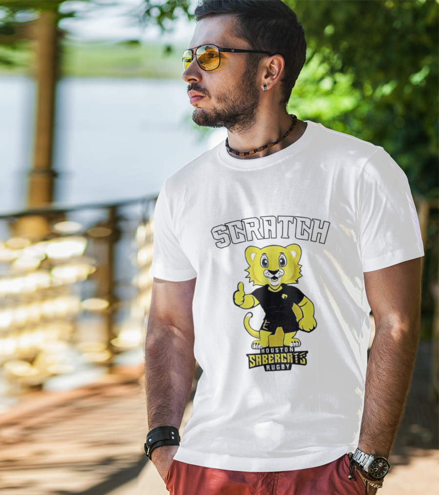 Meet the Houston SaberCats Rugby Scratch Mascot T-Shirt. Made with 100% ring-spun cotton that's pre-shrunk to minimize shrinking after washing. Features reinforced construction for added structure. Available in standard U.S. sizes S-5XL (see size chart for specifics).