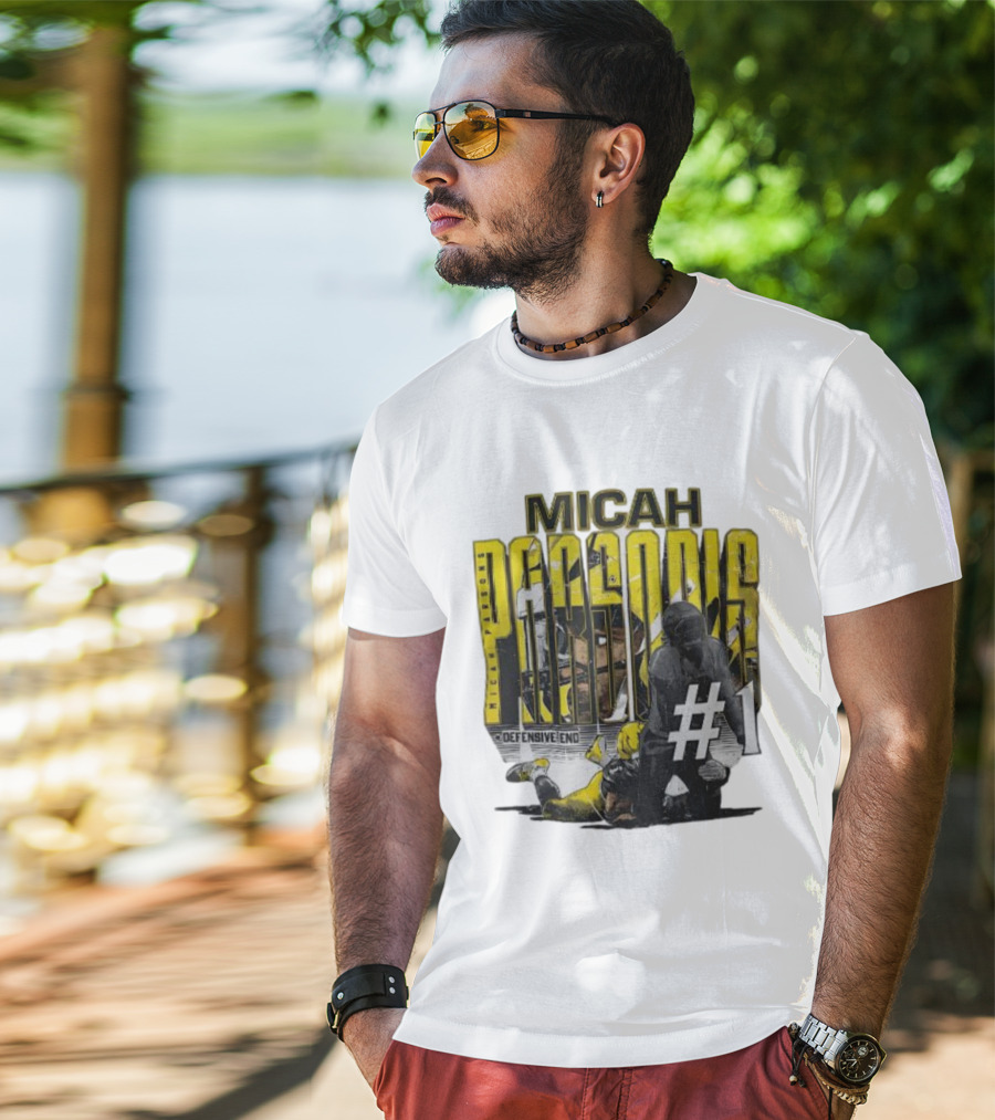 Meet the Micah Parsons Defensive End Number 1 T-Shirt. Made with 100% ring-spun cotton that's pre-shrunk to minimize shrinking after washing. Features reinforced construction for added structure. Available in standard U.S. sizes S-5XL (see size chart for specifics).