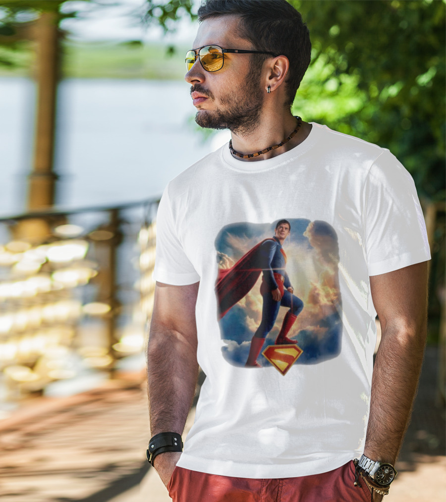 Meet the Superman 2025 Faded Standing Iconic Cape and Emblem T-Shirt. Made with 100% ring-spun cotton that's pre-shrunk to minimize shrinking after washing. Features reinforced construction for added structure. Available in standard U.S. sizes S-5XL (see size chart for specifics).