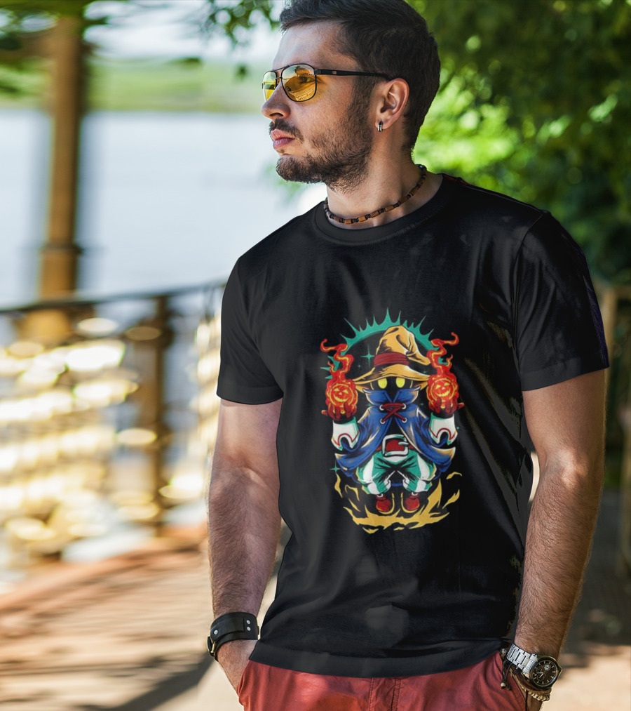 Meet the Black Mage Final Fantasy Pumpkin Fireball Halloween Magic T-Shirt. Made with 100% ring-spun cotton that's pre-shrunk to minimize shrinking after washing. Features reinforced construction for added structure. Available in standard U.S. sizes S-5XL (see size chart for specifics).