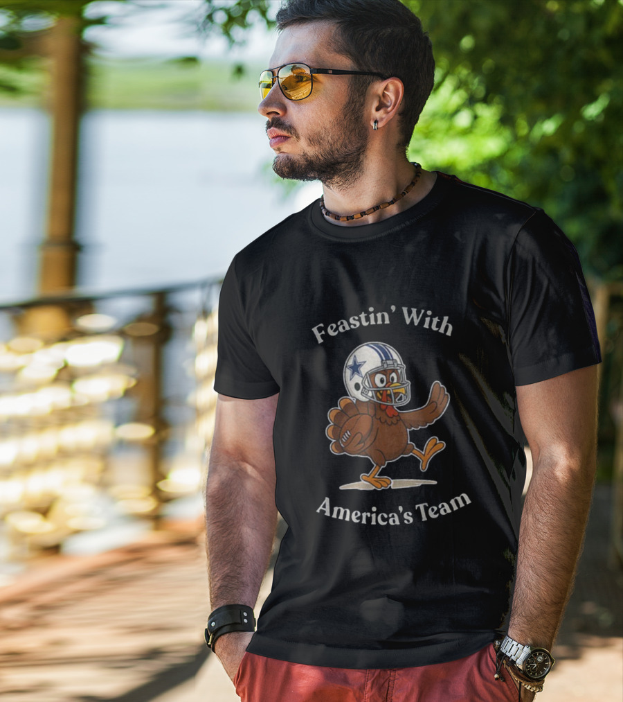 Feastin’ With America's Team Dallas Cowboys Thanksgiving Football Turkey T-Shirt
