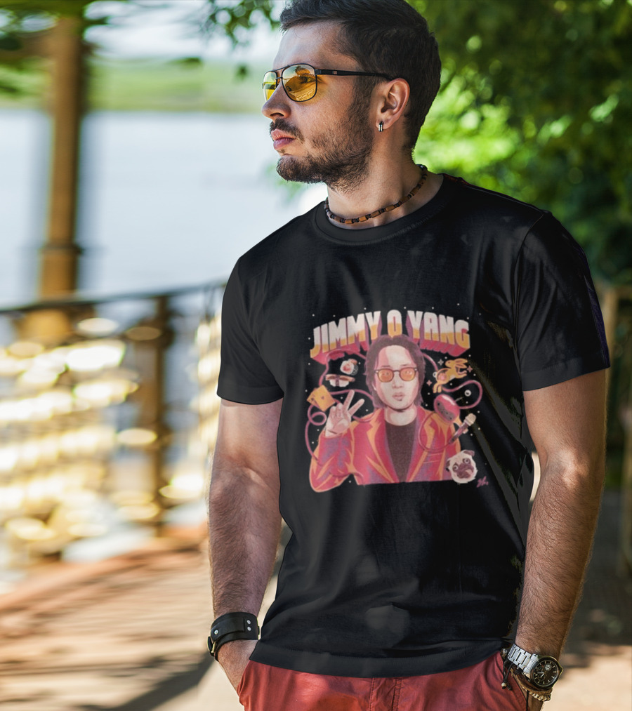 Images Gallery — Jimmy O. Yang Peace Sign Cartoon Pug and Sunglasses Shirt Mockups Collection