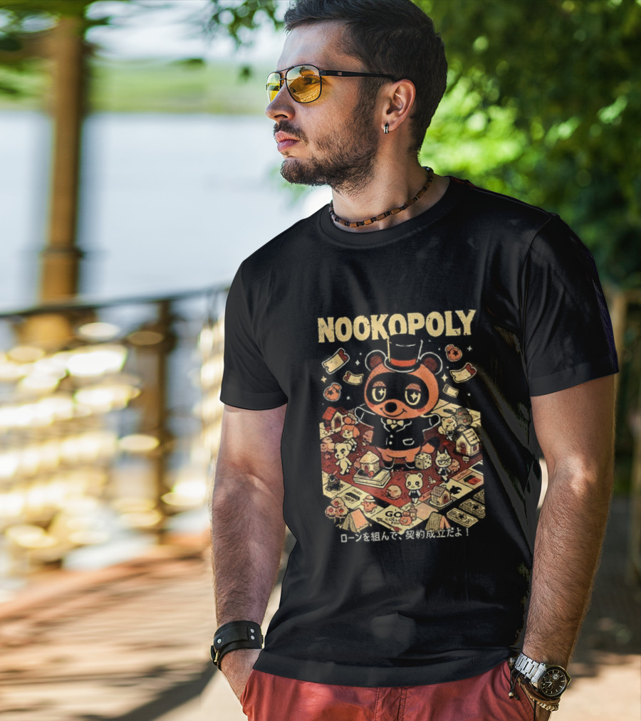 Meet the Nookopoly Animal Crossing Monopoly Game Crossover with Tom Nook in Top Hat T-Shirt. Made with 100% ring-spun cotton that's pre-shrunk to minimize shrinking after washing. Features reinforced construction for added structure. Available in standard U.S. sizes S-5XL (see size chart for specifics).