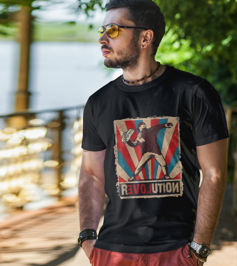 Meet the Sandwich Guy Revolution Retro Throwing Graphic T-Shirt. Made with 100% ring-spun cotton that's pre-shrunk to minimize shrinking after washing. Features reinforced construction for added structure. Available in standard U.S. sizes S-5XL (see size chart for specifics).