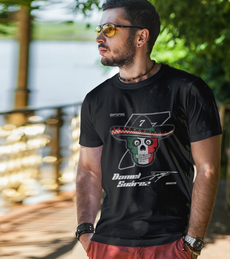 Daniel Suarez 7 Signature Skull Sombrero Spire Motorsports NASCAR T-Shirt