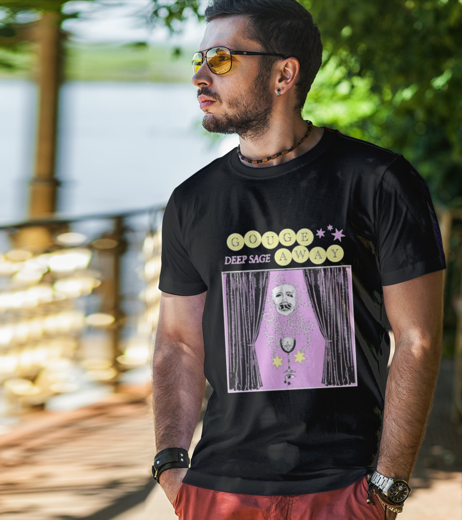 Meet the Gouge Away Deep Sage Mask Chalice Stars Curtain T-Shirt. Made with 100% ring-spun cotton that's pre-shrunk to minimize shrinking after washing. Features reinforced construction for added structure. Available in standard U.S. sizes S-5XL (see size chart for specifics).