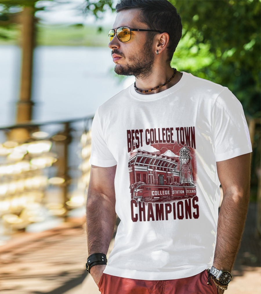 Best College Town Champions Texas A&M Aggies Football Stadium Water Tower College Station T-shirt — close-up view, front print.