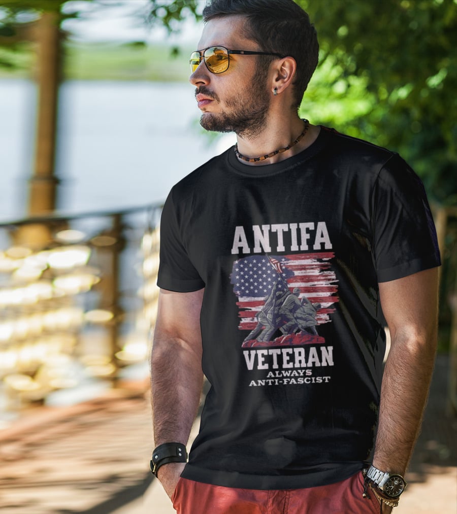 Images Gallery — Antifa Veteran Always Anti-Fascist American Flag Iwo Jima Scene Shirt Mockups Collection