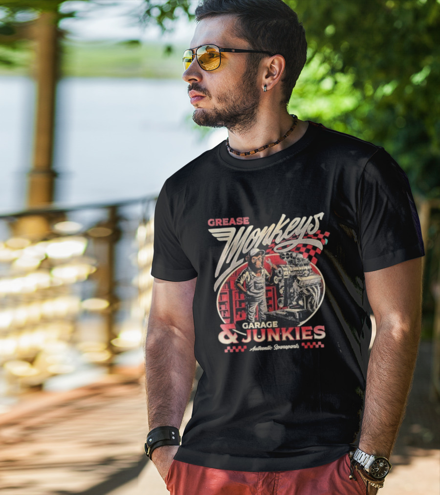 Meet the Grease Monkey Garage Junkies Authentic Squarepants Mechanics Engine Repair T-Shirt. Made with 100% ring-spun cotton that's pre-shrunk to minimize shrinking after washing. Features reinforced construction for added structure. Available in standard U.S. sizes S-5XL (see size chart for specifics).