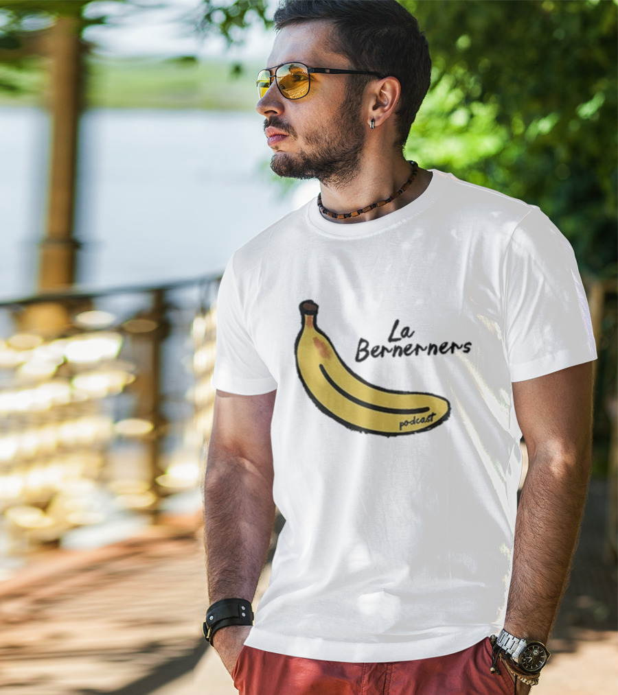 Meet the Bananas Bernerners Podcast Le Bernerners T-Shirt. Made with 100% ring-spun cotton that's pre-shrunk to minimize shrinking after washing. Features reinforced construction for added structure. Available in standard U.S. sizes S-5XL (see size chart for specifics).