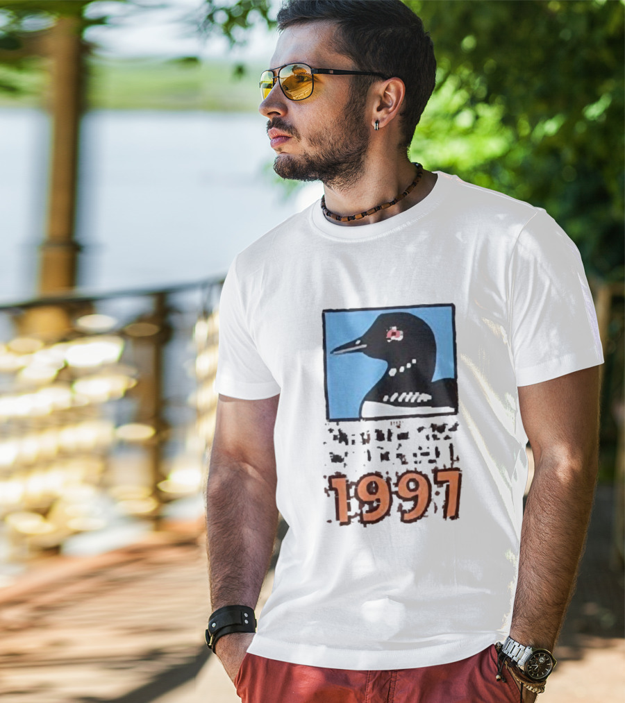 Meet the Only New York Wildlife Dept 1997 Loon Wildlife Iconic Bird Emblem T-Shirt. Made with 100% ring-spun cotton that's pre-shrunk to minimize shrinking after washing. Features reinforced construction for added structure. Available in standard U.S. sizes S-5XL (see size chart for specifics).