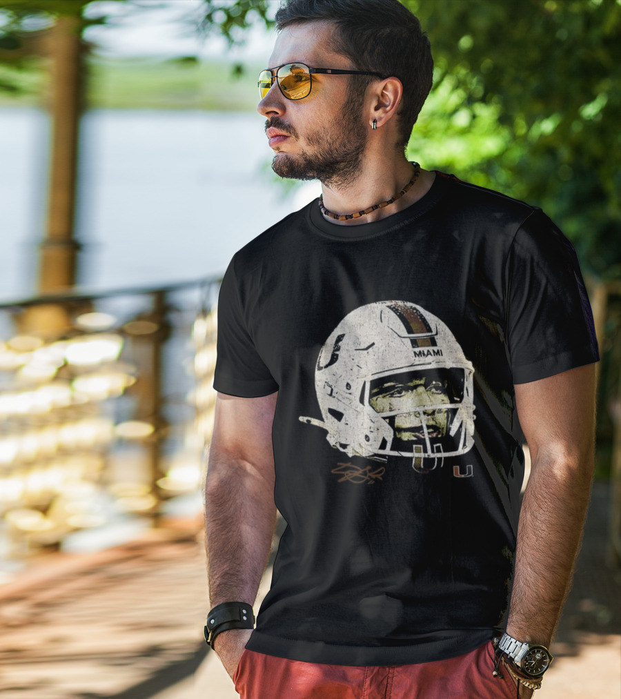 Carson Beck Miami Hurricanes Helmet Face NFL Football Signature U Logo T-Shirt