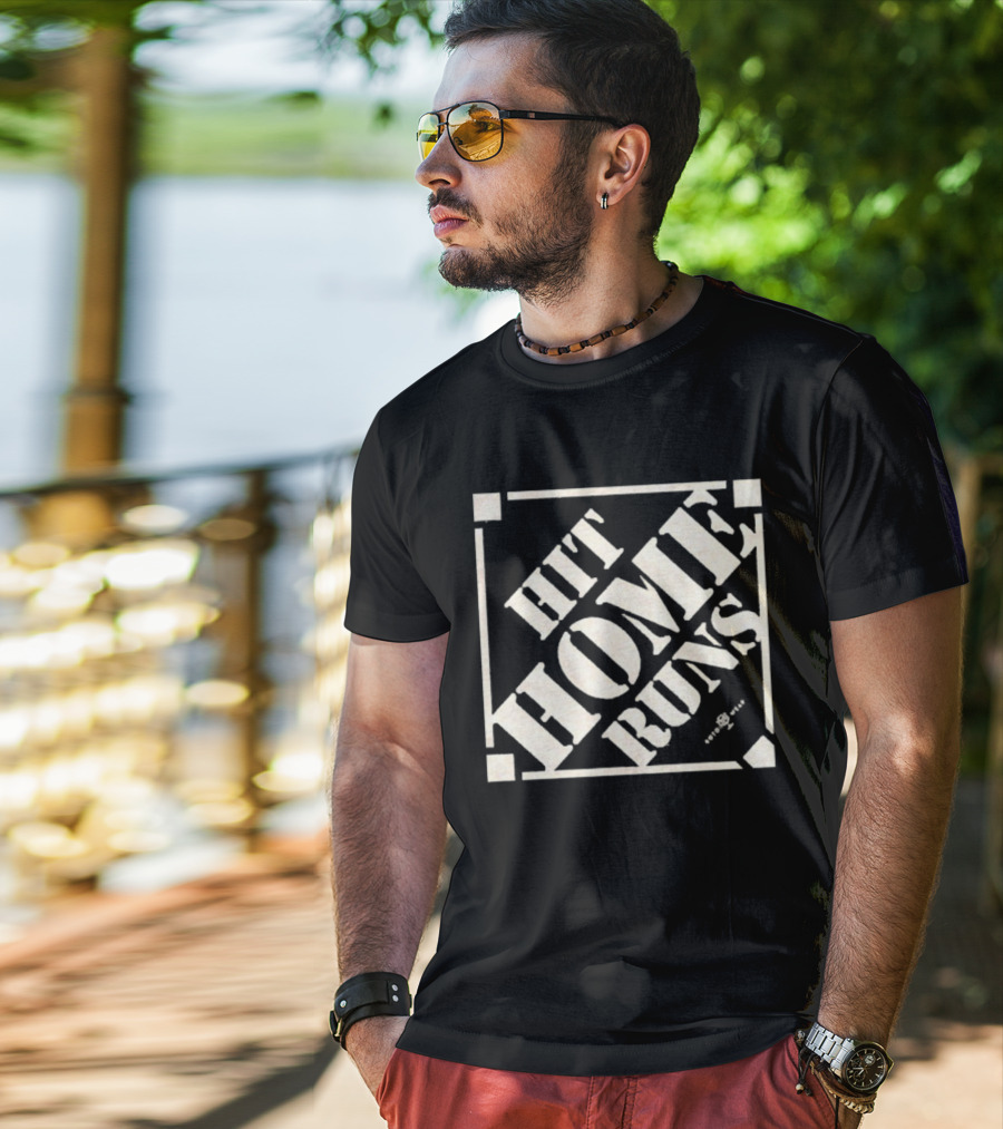 Meet the Hit Home Runs Baseball Enthusiast Style T-Shirt. Made with 100% ring-spun cotton that's pre-shrunk to minimize shrinking after washing. Features reinforced construction for added structure. Available in standard U.S. sizes S-5XL (see size chart for specifics).