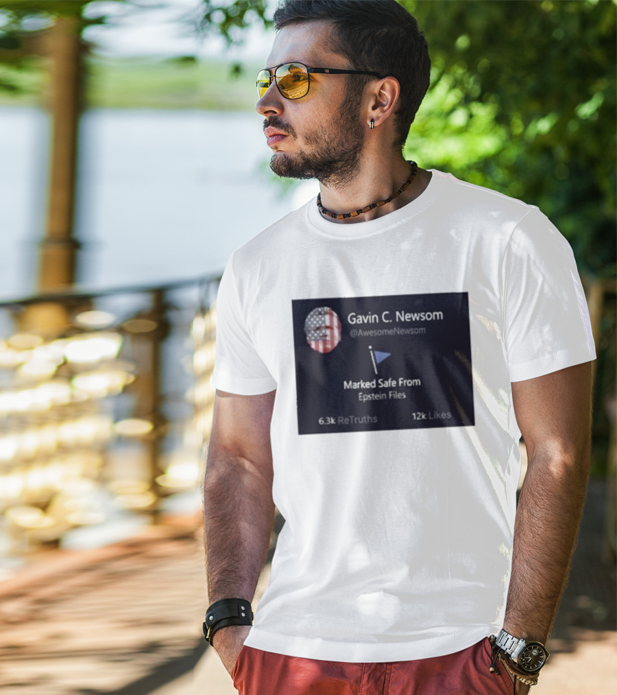 Images Gallery — Gavin C Newsom Marked Safe From Epstein Files American Flag Icon 6.3k ReTruths 12k Likes Shirt Mockups Collection