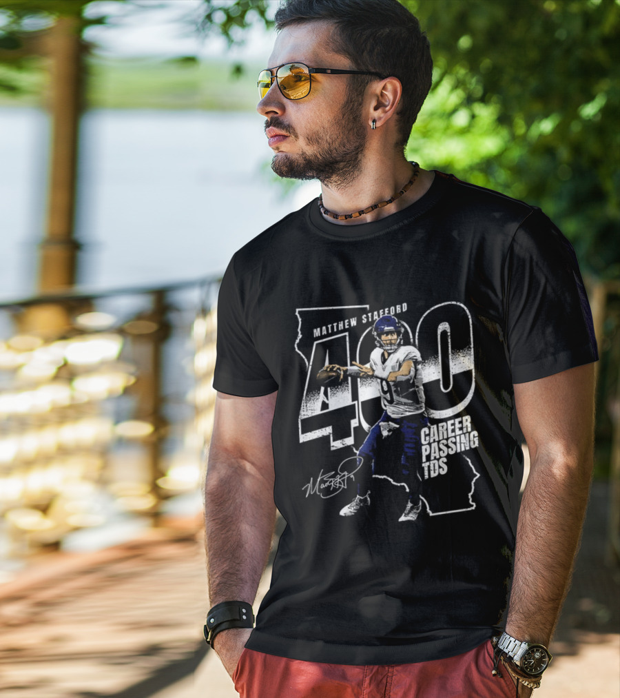 Images Gallery — Los Angeles Rams Matthew Stafford 400 Club Career Passing TDS Signature Shirt Mockups Collection